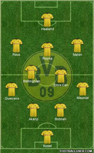 Haaland · Reus · Bellingham · Guerreiro · Meunier · Witsel · Dahoud · Akanji · Emre Can · Hummels · Kobel