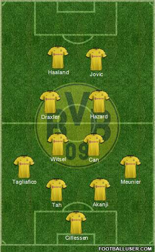 Gregor Kobel · Marin Pongracic · Manuel Akanji · Raphaël Guerreiro · Thomas Meunier · Axel Witsel · Mahmoud Dahoud · Jude Bellingham · Julian Brandt · Erling Haaland · Marco Reus