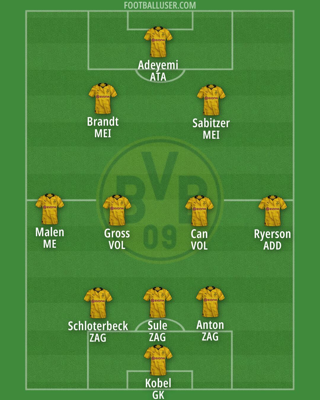 Sancho · Adeyemi · Beier · Brandt · Can · Sabitzer · Svensson · Ryerson · Bensebaini · Anton · Kobel