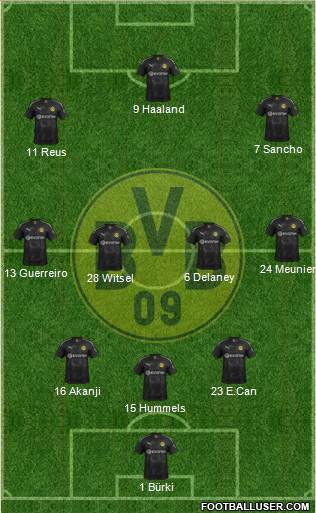 Haaland · Sancho · Reyna · Reus · Brandt · Witsel · Guerreiro · Meunier · Hummels · Can · Hitz