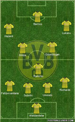 Вейденфёллер · Анхель · Суботич · Хуммельс · Шмельцер · Бендер · Гюндоган · Марин · Кагава · Старридж · Барриос