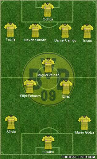 Weidenfeller · Hummels · Subotić · Dede · Piszczek · Nuri Sahin · Gotze · Kagawa · Barrios · Lewandowski · Błaszczykowski