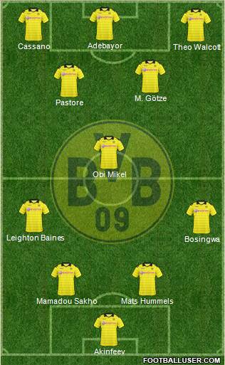 Weidenfeller · Ivanović · Hummels · Piszczek · Schmelzer · Kehl · Błaszczykowski · Kagawa · Gotze · Lewandowski · Barrios