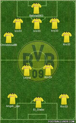 Weidenfeiller · Subotic · Hummels · Gibbs · Taiwo · Bender · M´Bia · Kagawa · Neymar · Sahin · Barrios