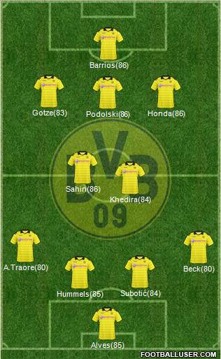 Barrios · Götze · Lucas · Kagawa · Nuri Sahin · Bender · Schmelzer · Piszczek · Hummels · Subotic · Weidenfeller