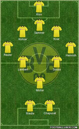 Weidenfeller · Schmelzer · Hummels · Subotic · Piszczek · Bender · Gündogan · Götze · Kagawa · Grosskreutz · Barrios