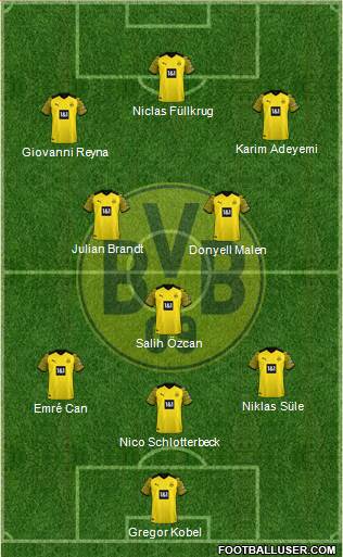 Kobel · Hummels · N.Schlotterbeck · Ryerson · Maatsen · Emre Can © · Sabitzer · Brandt · Sancho · Adeyemi · Füllkrug