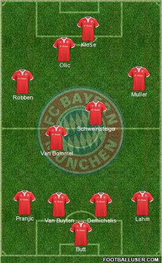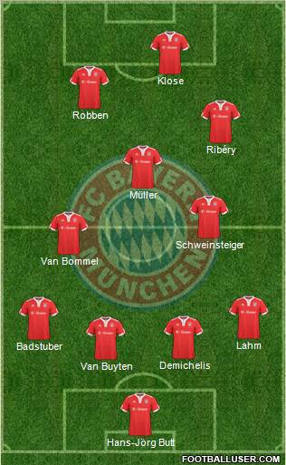 Hans-Jörg Butt · M. Bougherra · B. Ivanovic · P. Lahm · Rafinha · M. Van Bommel · B. Schweinsteiger · F. Ribéry · A. Robben · M. Gomez · G. Agbonlahor