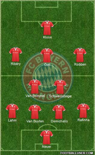 BUTT · BANSTUBED · ARALOA · DEMICHELIS · VAN BUTTEN · SCHWEINSTEIGER · VAN BOMMEL · RIBERY · ROBBEN · KLOSE · T.MULLER
