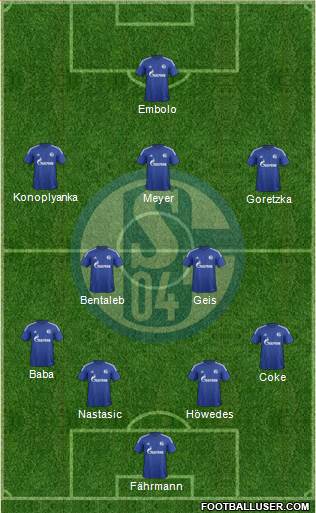 FÄHRMANN · NALDO · NASTASIC · HÖWEDES · BENTALEB · GORETZKA · BABA · COKE · KONOPLYANKA · CHOUPO-MOTING · HUNTELAAR