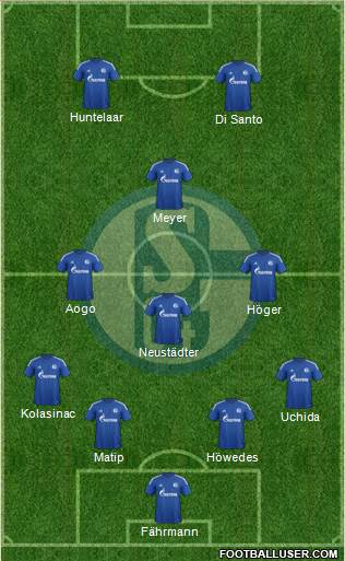 FÄHRMANN · NASTASIC · HÖWEDES · UCHIDA · KOLASINAC · HOJBJERG · NEUSTÄDTER · MEYER · GORETZKA · DI SANTO · HUNTELAAR