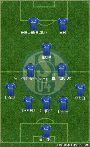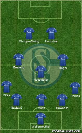 Fahrmann · Nastasić · Howedes · Matip · Fuchs · Meyer · Boateng · Uchida · Neustadter · Huntelaar · Choupo-Moting