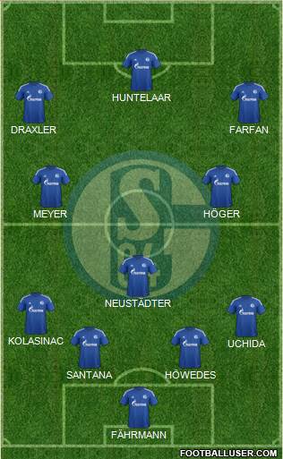 Fahrmann · Kirchhoff · Fuchs · Howedes · Uchida · Neustadter · Aogo · Meyer · Choupo-Moting · Hoger · Huntelaar