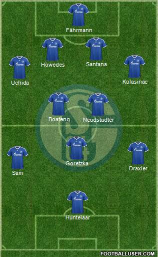 Fährmann / Giefer / Wetklo · J. Matip / Ayhan / F. Santana · Höwedes / Kirchoff · Kolasinac / Fuchs / Aogo · Uchida / Itter · Neüstadter / Höger / Sobottka · K. P. Boateng / Goretzka · Meyer / Sané · Draxler / Barnetta / Obasi · Sam / Clemens / Farfán · Huntelaar / Choupo-Moting