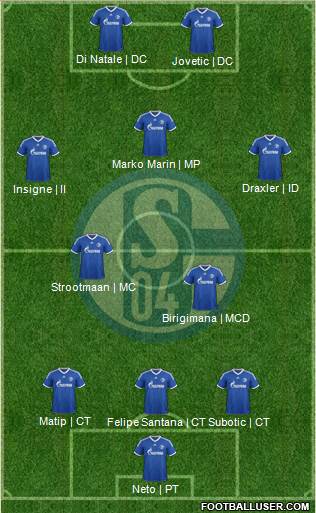 1 R Fährmann · 4 B Höwedes (C) · 32 J Matip · 6 S Kolasinac · 2 T Hoogland · 33 R Neustädter · 24 K Ayhan · 7 M Meyer · 10 J Draxler · 19 C Obasi · 25 KJ Huntelaar