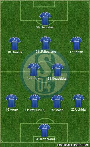 Fahrmann · Howedes · Papadopoulos · Uchida · Kolasinac · Hoger · Jones · Kevin Prince Boateng · Farfan · Draxler · Huntelaar