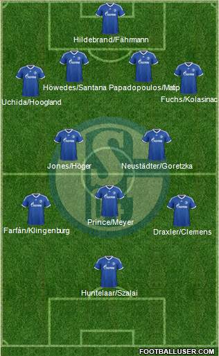 Hildebrand · F.Santana (Matip) · Howedes · Aogo (Fuchs) · Uchida · J.Jones (Annan) · Neustadter · K.P.Boateng · Draxler · Farfan · Huntelaar (Szalai)