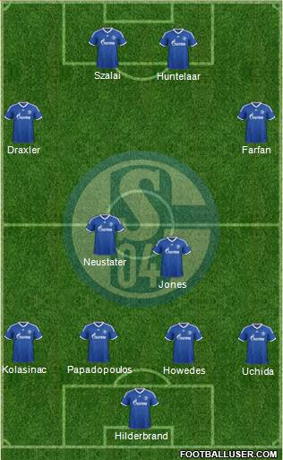 Fährmann · Boateng · Höwedes · Papadopoulos · Scott Parker · Veloso · Bastos · Farfán · Jurado · Eto'o · Luis Fabiano