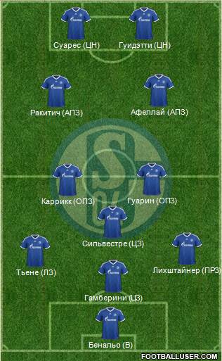 Ralf Fährmann · Benedikt Höwedes · Kyriakos Papadopoulos · Joël Matip · Marco Höger · Atsuto Uchida · Michel Bastos · Julian Draxler · Jefferson Farfán · Ibrahim Afellay · Klaas-Jan Huntelaar