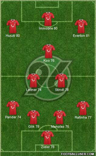 Zieler · Schulz · Marcelo · Sakai · Pander · Schmiedebach · Andersen · Bittencourt · Stindl · Kiyotake · Joselu