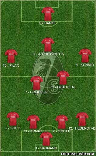 Bürki (Mielitz · Batz) · Krmas (Diagne · Höhn) · Mitrovic (Kempf) · Günter (Mujdza) · Sorg (Riether) · Frantz (Kerk) · Schuster (Stanko) · Schmid (Klaus) · Darida (Höfler) · Mehmedi (Freis) · Guédé (Zulechner)