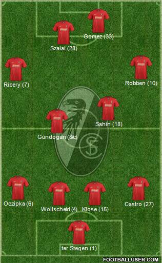 ter Stegen (1) · Javi Martinez (6) · Klose (15) · Pospech (3/c) · Johnson (16) · Schweinsteiger (31) · Gündogan (8) · Robben (10) · Ribery (7) · Castro (27) · Gomez (33)