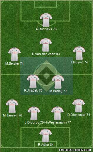 Adler / Drobny / Brunst-Zöllner · Djourou / Westermann · Tah / Rajkovic · Jansen / Ostrzolek · Diekmeier · Behrami / Kacar / Jung / Steinman · Badelj / Skjelbreg / Arslan · Van der Vaart / Jirácek / Götz · Beister / Stieber / Ilicevic · N. Müller / P. Müller / Nafiu · Lasogga / Rudnevs / J. Zoua