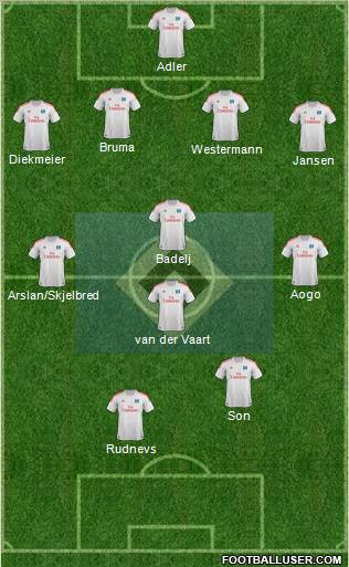 15 Adler · 5 Bruma · 4 Westermann (C) · 7 Jansen · 2 Diekmeier · 14 Badelj · 6 Aogo · 19 Jiracek · 23 van der Vaart · 10 Rudnevs · 40 Son