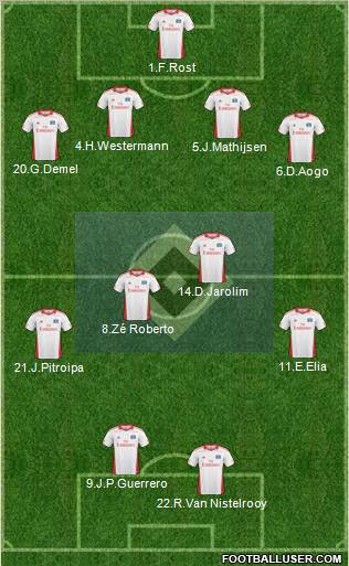 Rost · Jansen · Westermann · Mathijsen · Aogo · Jarolim · Ze Roberto · Petric · Elia · Pitroipa · Van Nistelrooy
