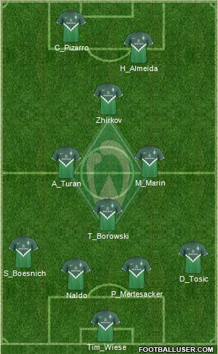 Tim Wiese · Naldo · Per Mertesacker · Mikaël Silvestre · Clemens Fritz · Tim Borowski · Torsten Frings · Wesley · Marko Marin · Claudio Pizzaro · Hugo Almeida