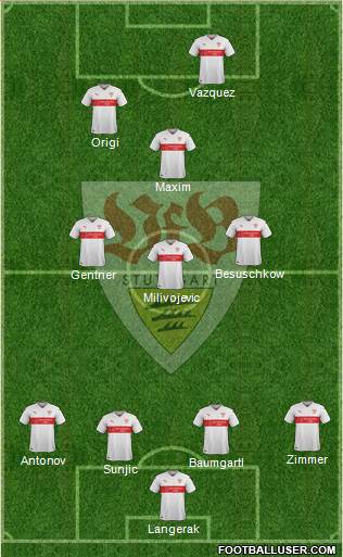 1 Schäfer · 21 Osorio · 14 Fernando Meira · 3 Boka · 5 Tasci · 8 Pardo · 7 Khedira · 4 Hilbert · 28 da Silva · 18 Gomez · 20 Cacau