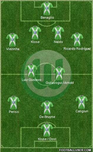 Casteels · Klose · Naldo · Träsch · Rodriguez · Gustavo · Guilavogui · Vieirinha · Caligiuri · Kruse · Dost
