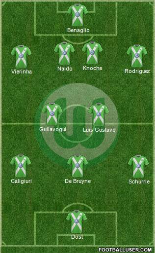 Benaglio · Naldo · Knoche · Rodríguez · Träsch · Guilavogui · Luiz Gustavo · Perisic · Caliguri · Arnold · Dost