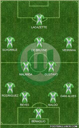 BENAGLIO · KNOCHE · NALDO · VIEIRINHA · RODRIGUEZ · LUIZ GUSTAVO · MALANDA · DE BRUYNE · SHÜRRLE · PERISIC · DOST