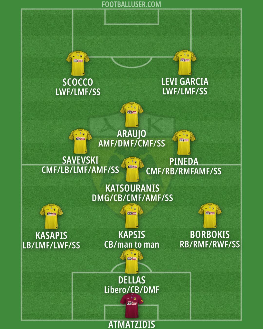 Τ.STRAKOSHA A.BRIGNIOLI (A.ANGELOPOULOS) · S.PILIOS · H.MOUKOUDI (K.CHRYSOPOULOS) · S.MITOGLOU (D.VIDA) · L.ROTA (M.ODOUBAJO) · D.SZYMANSKI L.MAROUTSIS (J.JONSSON C.KOLIMATSIS) · O.PINEDA P.MANTALOS (R.LJUBICIC R.PEREIRA) · E.LAMELA (D.KALOSKAMIS) · A.MARTIAL M.GACINOVIC (A.KOITA D.KUTESA) · N.ELLIASON S.TSILOULIS (P.FERNANDES), ...