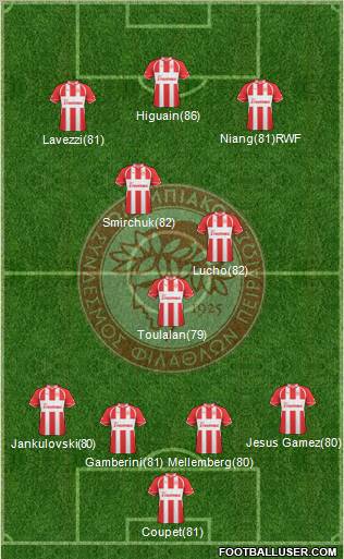 Megyeri · A.Papadopoulos · Mellberg · Torosidis · Tzavellas · Sanchez · Modesto · Ibagaza · Riera · Vierinha · Mirallas