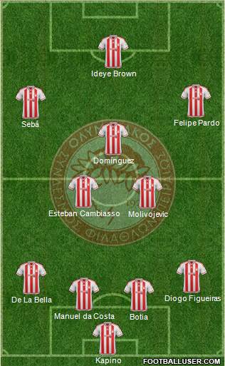 Kapino · Manuel da Costa · Diogo Figueiras · Botía · De La Bella · Cambiasso · Milivojevic · Fortounis · Sebá · Marin · Brown