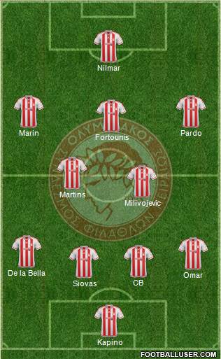 KAPINO · SIOVAS · DA COSTA · FIGUEIRAS · DE LA BELLA · CAMBIASSO · MILIVOJEVIC · FORTOUNIS · SEBA · PARDO · CARDOSO