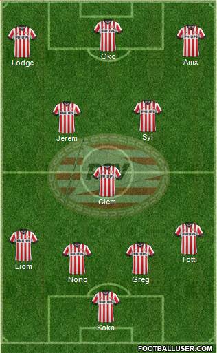 Zoet (PT) · Bruma (CT) · Rekik (CT) · Willems (LI) · Guardado (LD) · Hiljemark (MCD) · Wijnaldum (MC) · Maher (MP) · Narsingh (ED) · Depay (EI) · Luuk (DC)