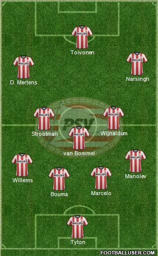 Tyton · Bouma · Hutchinson · Marcelo · Willems · van Bommel · Strootman · Narsingh · Mertens · Toivonen · Lens