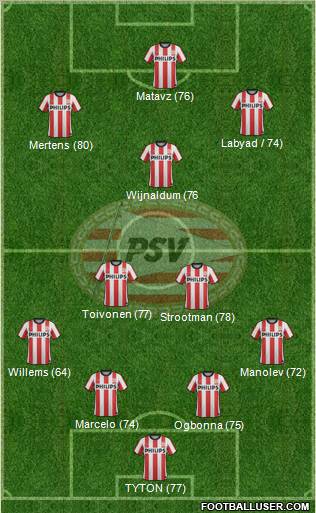 tyton · zanka · marcelo · willems · gebre selassie · strootman · van bommel · toivonen · mertens · wijnaldum · lens