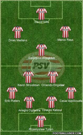 Narsingh · Matavz · Mertens · Toivonen · John · Strootman · Wijnaldum · V.Bommel · Zanka · Willems · Tyton