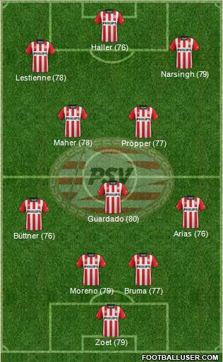 Zoet · Bruma · Moreno · Arias · Brenet · Guardado · Propper · Maher · De Jong · Narsingh · Locadia