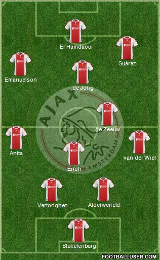 Stekelenburg · Vertonghen · Alderweireld · Van der Wiel · Anita · Enoh · De Zeeuw · De Jong · Emanuelson · Suarez · El Hamdaoui