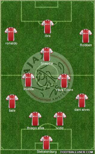 Van der Sar · F. de Boer · Suurbier · Krol · Vasovic · Rijkaard · Neeskens · Seedorf · Overmars · Keizer · Cruijff