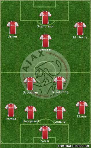 Vorm · Vertonghen · Lugano · Pereira · van der Wiel · Strootman · Siem de Jong · Janssen · Boerrigter · McGeady · Luuk de Jong