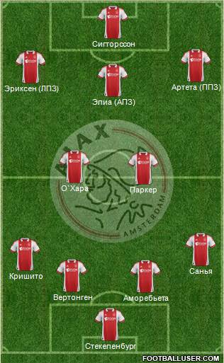 Cillissen · Tzavellas · Alderweireld · van der Wiel · Ortiz · Lilipaly · Serero · Eriksen · Atsu · Narsingh · Dost