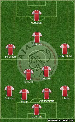 cillessen · sigmans · vermeer · verhoeven · boilesen · bizot · ooijer · vertongen · toivomaki · aldeirweireld · anita · van der wiel · enoh · ligeon · van rhijn · koppers · blind · de laat · silva · kip · boere · lodeiro · ebecillio · özbilliz · janssen · eriksen · serero · rits · lukoki · de jong · boerigter · sulejmani · bulykin · sigthorsson
