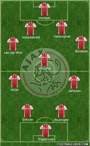De Jong · Boerrigter · Sulejmani · Eriksen · Janssen · Enoh · Van der Wiel · Anita · Alderweireld · Vertonghen · Vermeer