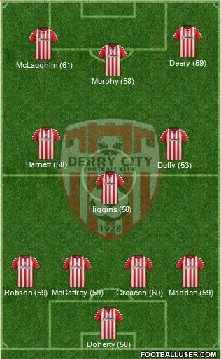Doherty (58) · Robson (59) · McCaffrey (59) · Greacen (60) · Madden (59) · Higgins (58) · Duffy (53) · Barnett (58) · Murphy (58) · McLaughlin (61) · Deery (59)